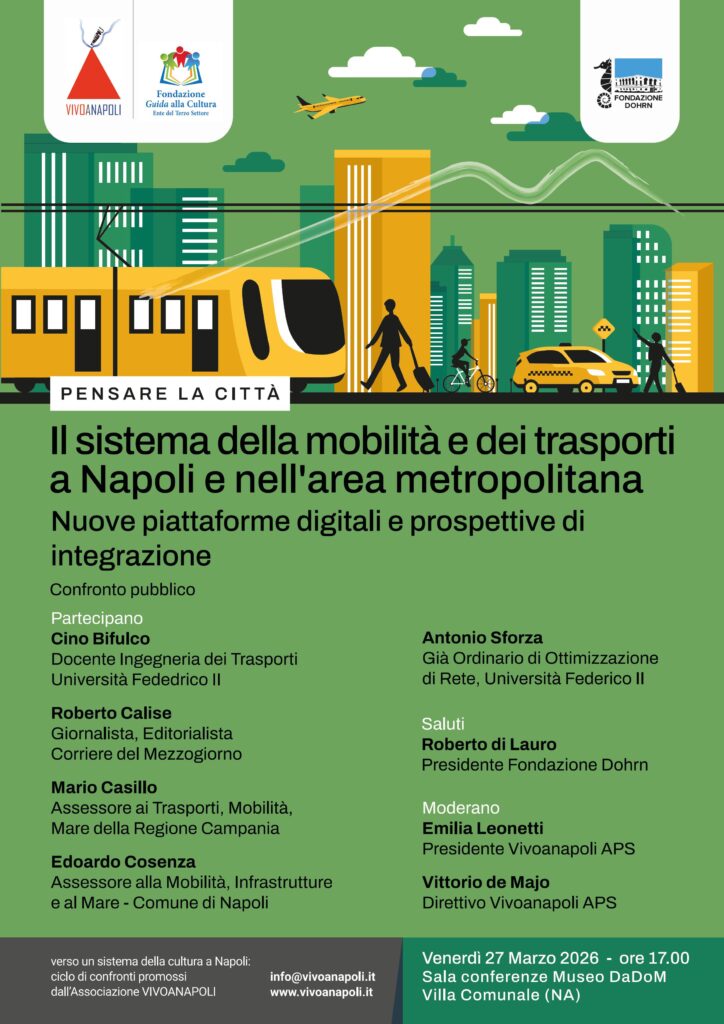 Vivoanapoli, Fondazione Dohrn e Fondazione Guida promuovono per venerdì 27 marzo, ore 17.00, un pubblico confronto sul tema “Il sistema della mobilità e dei trasporti a Napoli e nell’area metropolitana”. Partecipano: