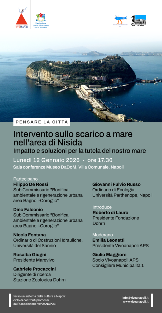 Vivoanapoli APS in collaborazione con la Fondazione Dohrn organizza per lunedì 12 gennaio 2026, l’incontro sul tema “Intervento sullo scarico a mare nell’area di Nisida. Impatto e soluzioni per la tutela del nostro mare”.